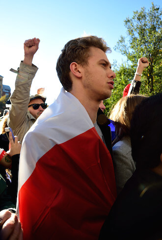 After weeks of encampment, the activists reached a détente with the authorities, settling into a rhythm where they only gather on the weekends and after work until midnight or 1 a.m. If you pass by, you’ll see tents and tables and small working groups. Other times, there are big general assembly meetings with lots of speakers. In terms of gender, the overwhelmingly white crowd seems reasonably mixed, but when it comes to speakers it’s mostly men. The men talk a lot— about equality, horizontality, and intersectionality, drawing connections between civil liberties and income, police reform, immigration, Palestine, the environment, questions of race, women, queers.